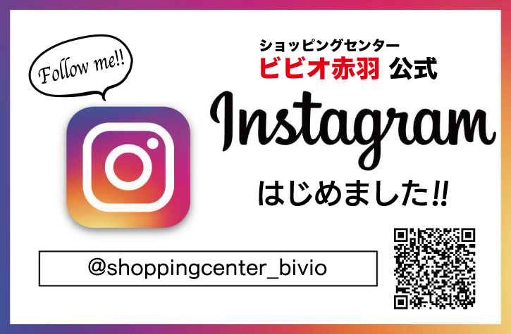 ビビオ公式インスタグラムを始めました!akabanebivio2020年7月22日読了時間: 1分更新日:2022年4月13日ビビオ公式インスタグラムでは、店舗情報やイベント、キャンペーン、クーポンなど、さまざまな情報を掲載していきます!ビビオをフォローして、お得な情報をゲットしよう! ビビオ公式アカウント https://www.instagram.com/shoppingcenter_bivio/ ●ビビオ公式インスタグラムをフォローする ⑴下記のQRコードを読み込む ⑵インスタグラムで「shoppingcenter_bivio」を検索